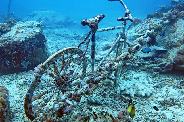 刪除The bicycle under the water is quite a special view.